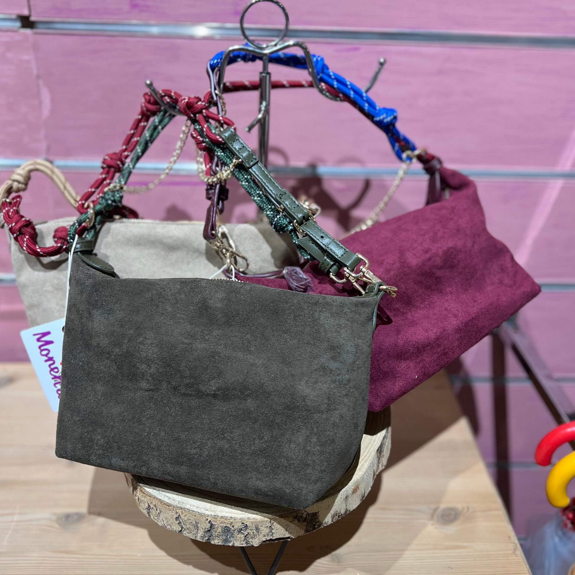 Bolso de piel de antes con cremallera en tres colores.