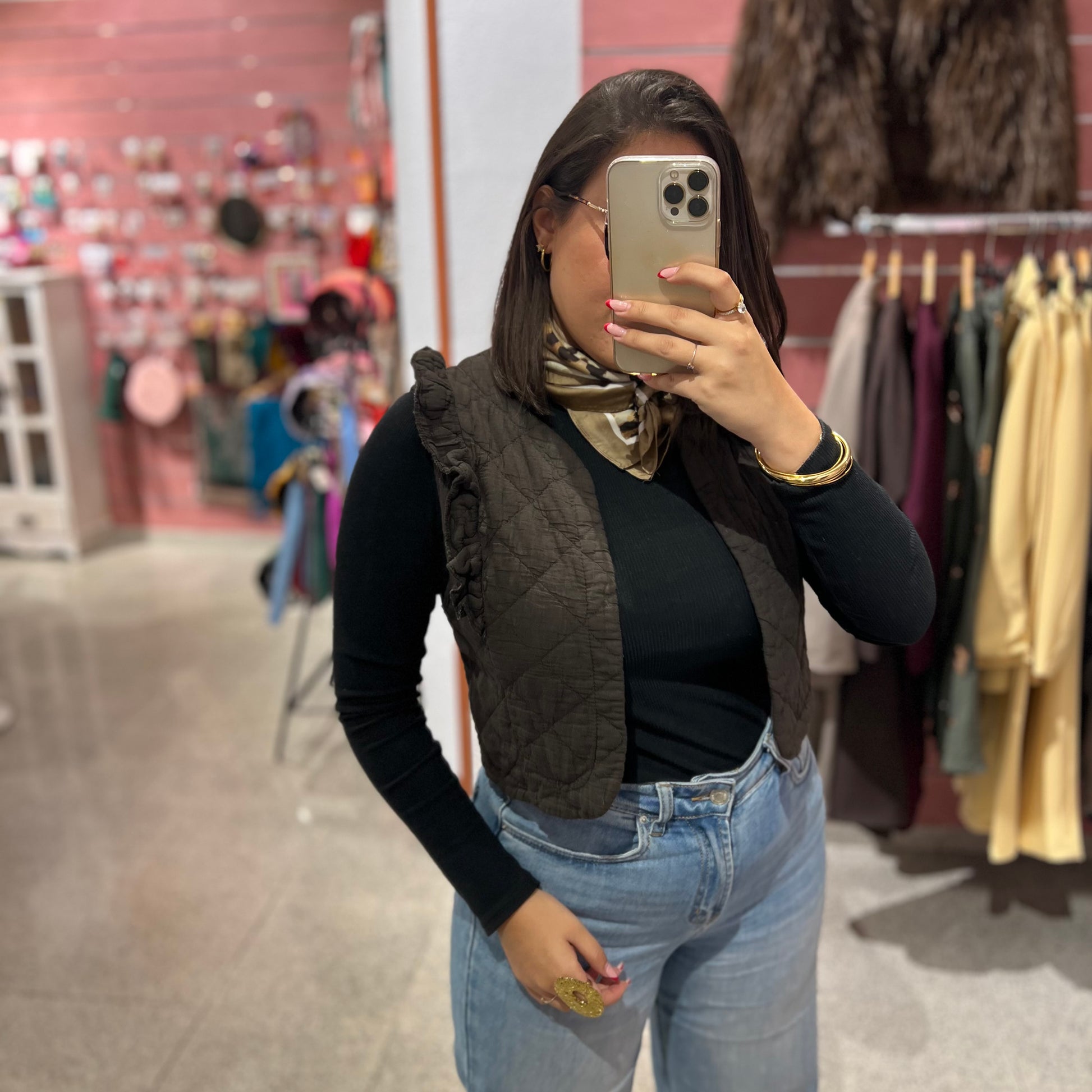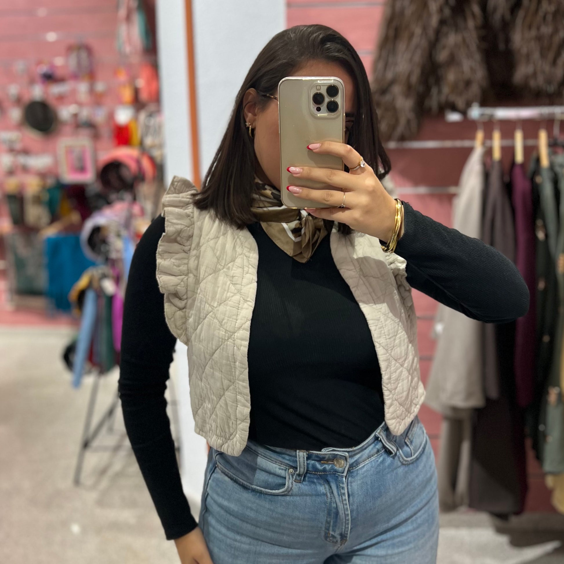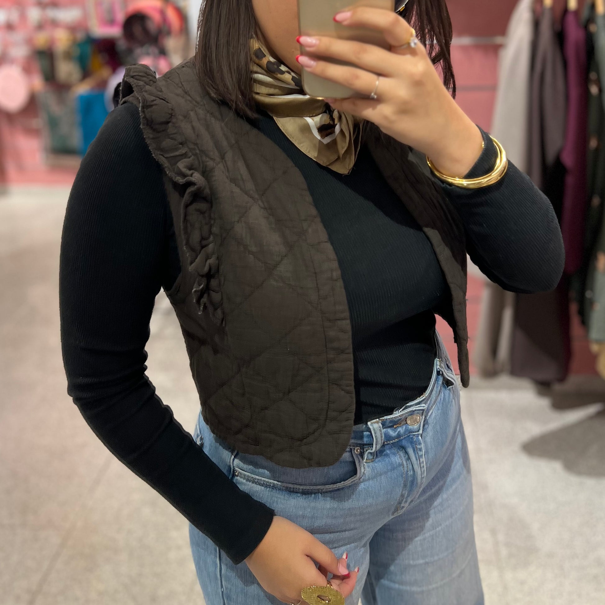 Chaleco basic con volantes en los hombros. Es pequeñito.