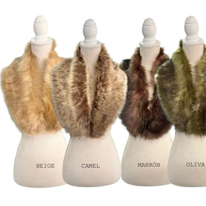 Cuello de pelo sintético ideal para completar tu look de invierno y protegernos del frío.