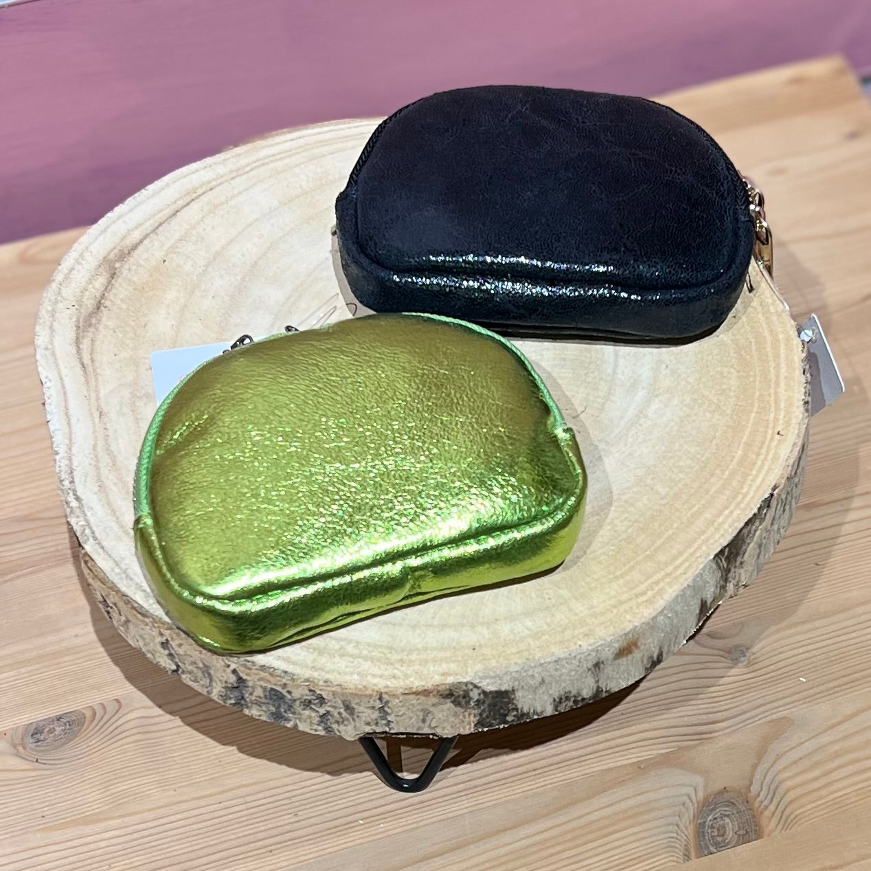Monedero de piel con briilo.