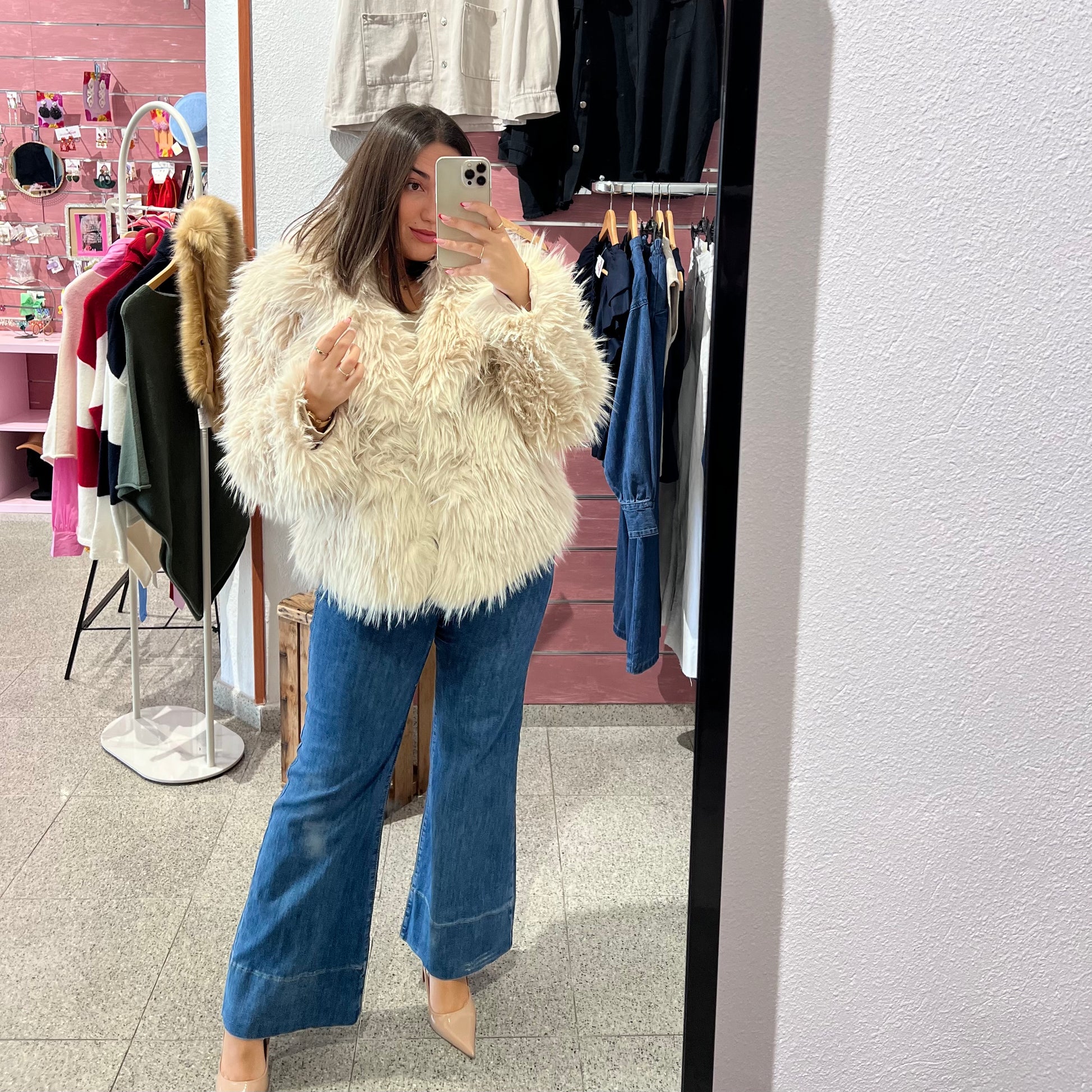 Talla única, abrigo de pelo sintético, con bolsillos y corchetes.